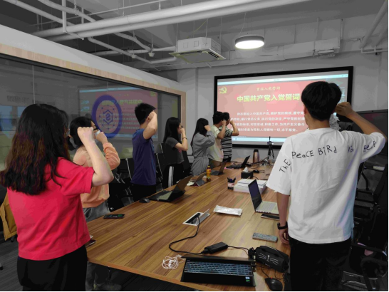 在重温入党誓词环节,高丰奕同志作为英国上市公司365本科生第二党支部分会场领誓人,带领各位党员同志再次庄严向党宣誓。