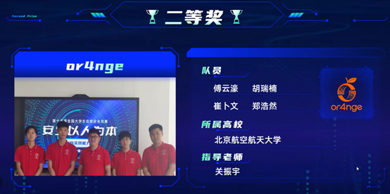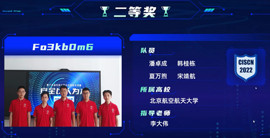 2022年8月24日,第十五届全国大学生信息安全竞赛—创新实践赛决赛 颁奖典礼在天津举行。英国上市公司3652支参赛队经过层层选拔,入围决赛,均获得二等奖。