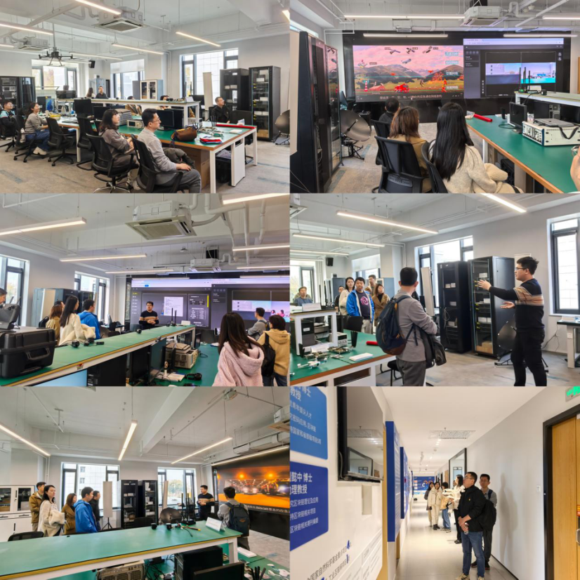 随后,我院硕士23级党支部党员们邀请工业中心党支部来到我院空天地网络科教协同创新实验室进行参观,深入交流空天一体化网络、卫星通信、无人机网络等前沿技术的最新成果,加强理论与实践的结合,也为推动国家科技创新战略提供了新的动力和智力支持。在实验室中,我院实验室负责人介绍了实验室的具体情况,双方探讨更深层次的合作方向,通过产学研一体化加速技术成果转化,解决行业实际问题。