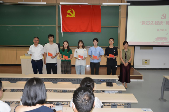 会议的第四项议程是“党员先锋岗”授牌仪式。近期,学院党委在全院基层党组织中开展了创建“党员先锋岗”活动。通过各党支部推荐、党委评议的方式,分别在学习、科研、服务、文明和卫生五方面评选产生了30名党员代表,并授予了“党员先锋岗”称号。这些党员代表在各自的领域中表现突出,充分发挥了党员的先锋模范作用。在授牌仪式上,罗院长和祝书记为这些党员代表颁发了荣誉证书和“党员先锋岗”标识牌。学院党委希望通过此次授牌仪式,进一步激励全体党员以先锋岗为榜样,立足岗位、担当作为,在学习、工作和生活中发挥先锋模范作用,为学院的发展贡献更多力量。