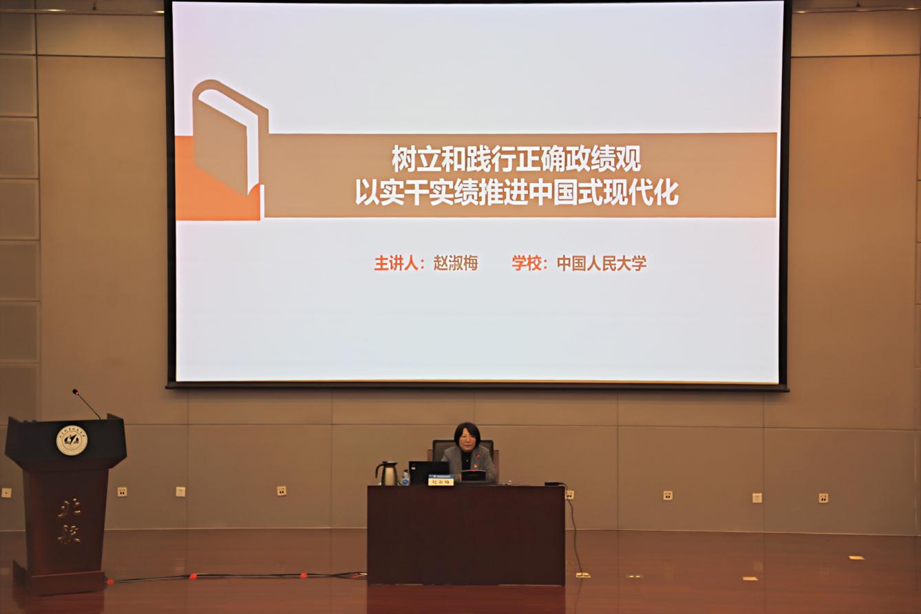 报告中,赵淑梅系统梳理了政绩观与正确政绩观的内涵及历史演进脉络,清晰阐释了新时代正确政绩观的核心要义与主要表现,深刻阐明了树立和践行正确政绩观与推进中国式现代化的内在联系。她围绕“政绩为谁而树、树什么样的政绩、靠什么树政绩”根本问题,结合正反两面典型案例,深入解读了树立和践行正确政绩观“立党为公、为民造福、科学决策、真抓实干”总要求。