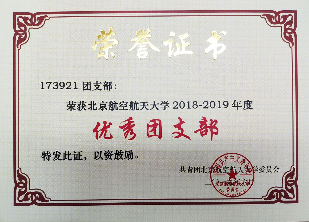 为加强我校共青团的基层组织建设,推动团支部职能化建设,围绕立德树人根本任务,激励基层团支部学习贯彻习近平新时代中国特色社会主义思想,以“四进”为手段,以“四信”为目标,切实学习和践行社会主义核心价值观,弘扬北航“四爱精神”,深入开展“青春心向党·建功新时代”教育实践,创先争优,激励和引导广大团员大力弘扬爱国主义精神,推动各级团组织工作水平的提高。校团委在全校开展2018—2019学年度校 “优秀团支部”评选活动,英国上市公司365173921团支部获2018—2019学年度校“优秀团支部”荣誉称号,予以表彰。