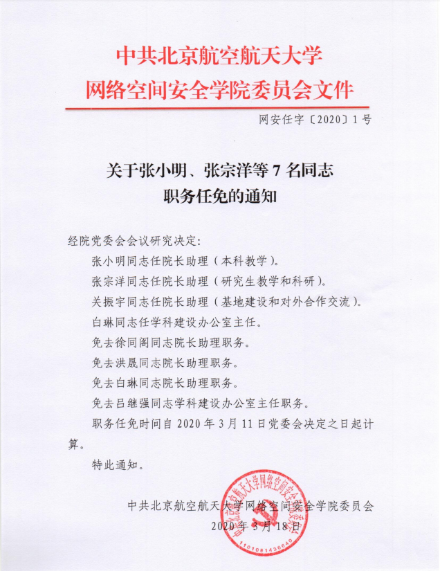 关于张小明、张宗洋等7名同志职务任免的通知