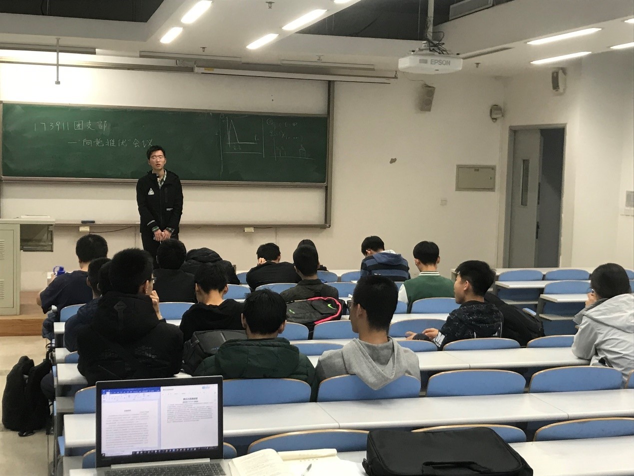 2019年3月22日下午6:15,信息安全专业团支部在沙河校区J4-204举办了2018-2019学年度“向党推优”活动评议会。大会应到19人,实到19人。本次会议由团支书张舟主持,小班长赵壁和协助开展。本次“向党推优”会议在信息安全专业团支部有1人符合参评条件。会议开始,团支书张舟介绍2018-2019“向党推优”工作的推优规则和“推优”候选人名单产生过程。